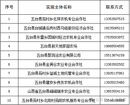 五台县2025年农业生产托管服务主体合格对象名单公示