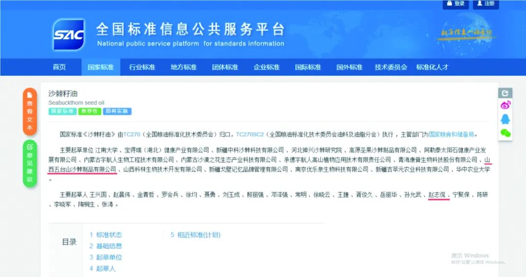 由江南大学、山西五台山沙棘制品有限公司赵志侃董事长等企业带头人联合起草的国内首个GBT46295一2025《沙棘籽油》国家标准文本重磅发布