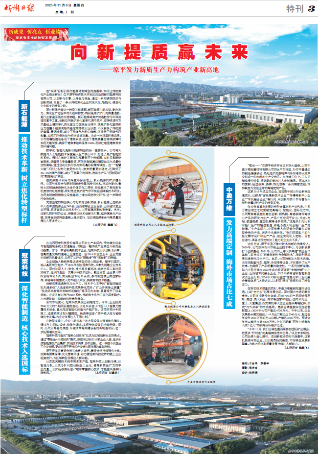 凭借坚定的转型决心与扎实的创新实践,新石能源已连续多年入选中国能源企业500强、山西省综合企业百强、山西省民营企业百强,获评省级企业技术中心、山西省模范集体等荣誉。未来,这家扎根忻州的企业,将继续以技术创新为引擎,延伸煤焦化产业链,在绿色低碳转型道路上稳步前行,为区域能源革命与高质量发展注入更多活力。(本报记者魏鹏飞)