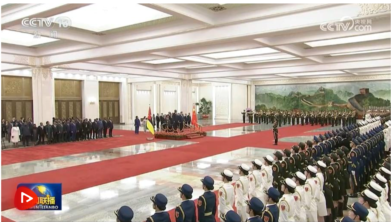 4月21日下午,国家主席习近平在北京人民大会堂同来华进行国事访问的莫桑比克总统查波举行会谈。两国元首一致同意将双边关系提升至新时代中莫命运共同体。