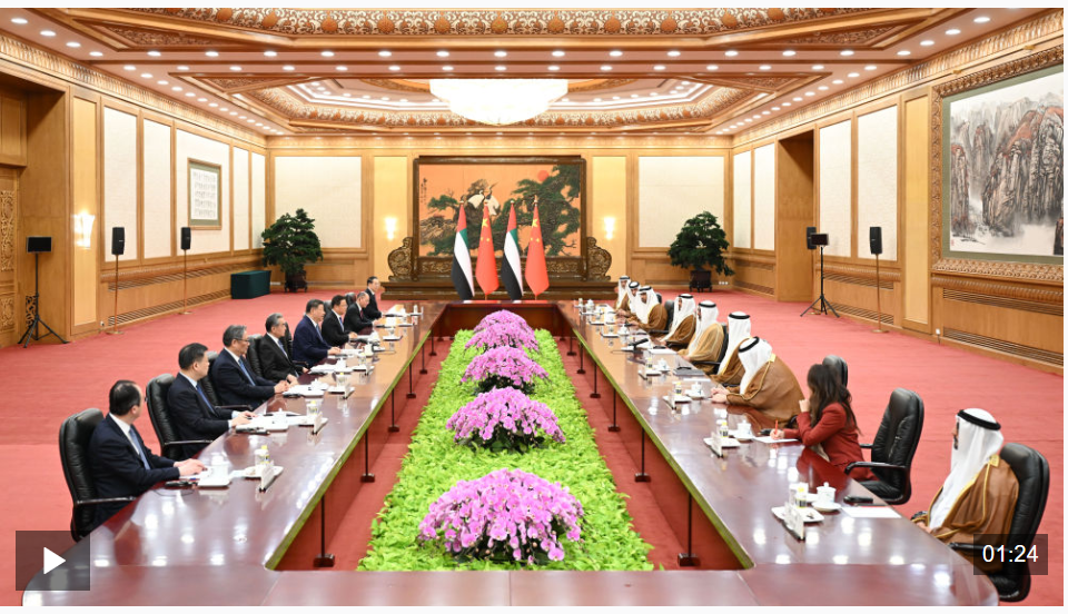 哈立德说:“主席阁下,阿联酋和中国的关系历史悠久、根基深厚。阿联酋高度重视同中国的伙伴关系。我们致力于进一步推动两国关系向前发展,开拓更广阔的前景。”