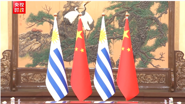 2月3日上午,国家主席习近平在北京人民大会堂同来华进行国事访问的乌拉圭总统奥尔西举行会谈。
