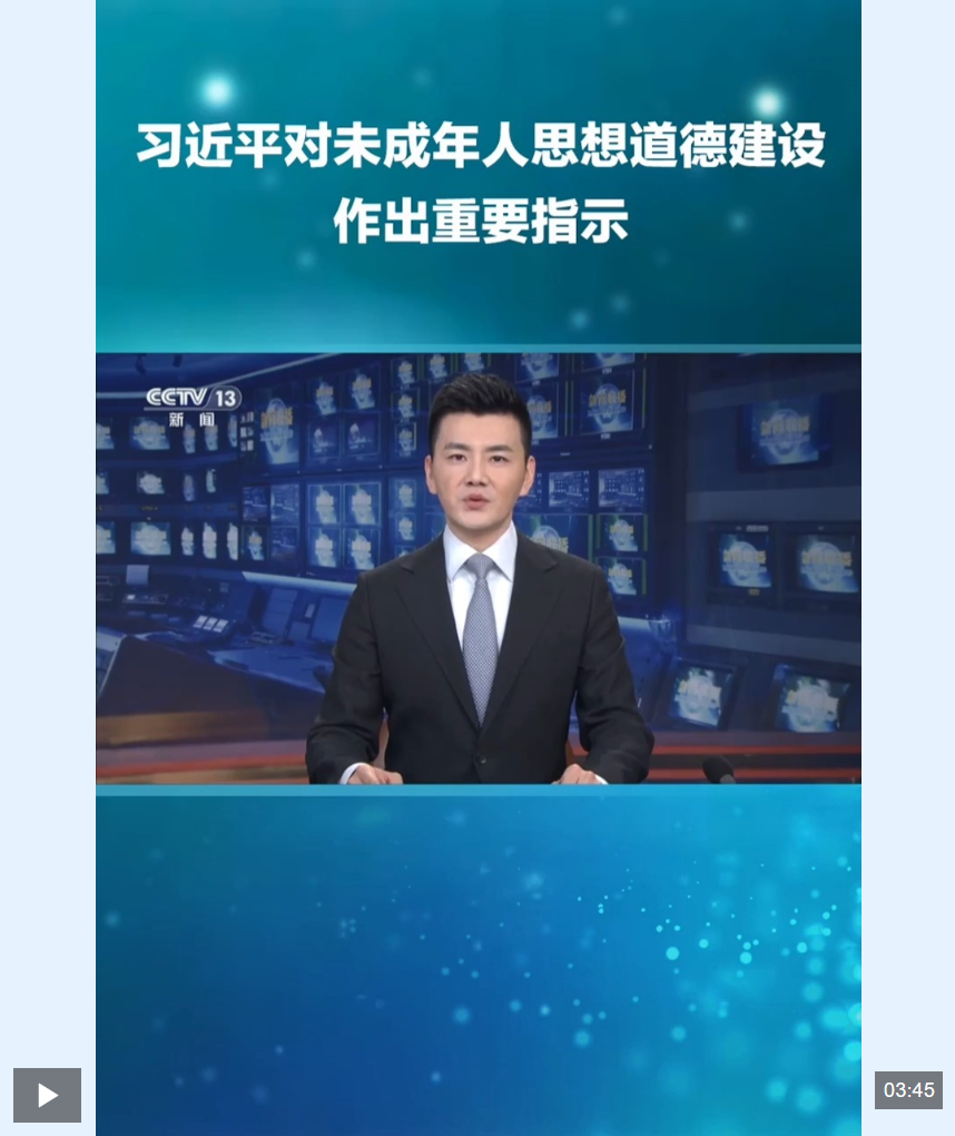 近日,习近平总书记对未成年人思想道德建设作出重要指示,要求落实立德树人根本任务,坚持把未成年人思想道德建设作为战略性、基础性工作来抓。(详情>>)