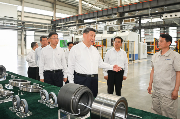 2025年5月19日至20日,中共中央总书记、国家主席、中央军委主席习近平在河南考察。这是19日下午,习近平在洛阳轴承集团股份有限公司智能工厂考察。新华社记者 谢环驰 摄