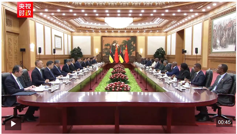 4月21日下午,国家主席习近平在北京人民大会堂同来华进行国事访问的莫桑比克总统查波举行会谈。