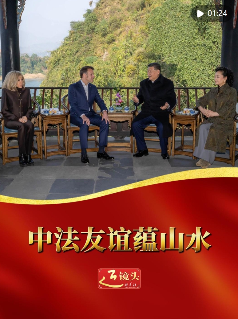 在首都之外的地方进行别开生面的互动,已成为近年习近平主席同马克龙总统交往的特色安排。从2023年在广州松园共赏古琴演奏《高山流水》,到2024年图尔马莱山口叙谈,再到2025年都江堰友好交流,中法元首一次次共同度过美好难忘时光,传为佳话。