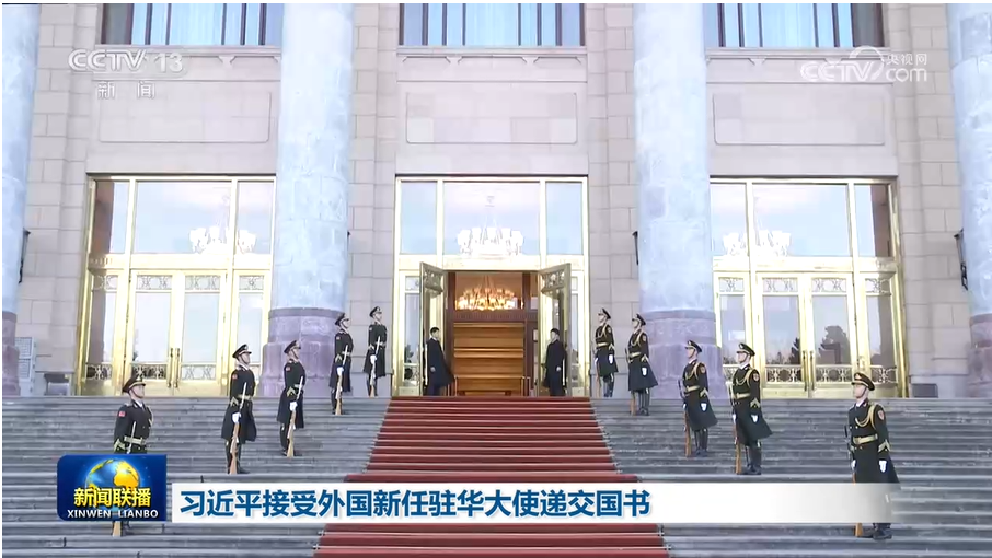 1月16日上午,国家主席习近平在北京人民大会堂接受18位驻华大使递交国书。