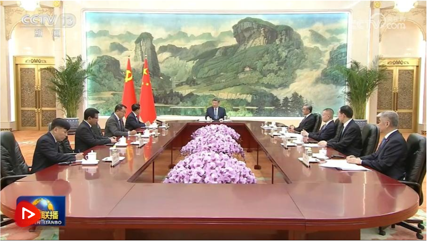 4月21日下午,中共中央总书记、国家主席习近平在人民大会堂会见作为老挝人民革命党中央总书记、国家主席通伦特使专程来访的老挝人革党中央政治局委员、常务副总理沙伦赛。