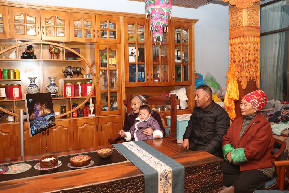 青藏高原南部,山南市的一户藏族民居里,电视上正放着习近平总书记发表新年贺词的视频直播。年近九旬的藏族老人陈明英拿着遥控器想把声音调得更高些。