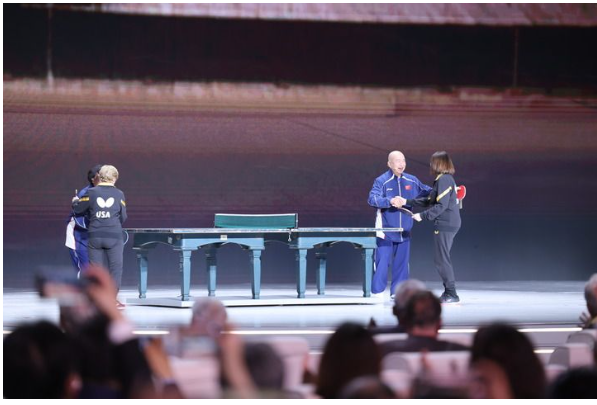 2015年,习近平主席访美期间,向美国塔科马市林肯中学赠送了介绍中国的图书、乒乓球桌以及球具,勉励两国青少年加强交流,增进友谊,继续为中美关系这座大厦添砖加瓦。塔科马市市长安德斯·易卜生此次携林肯中学学生再次奔赴以“乒乓”为名的相聚,他感慨说,“体育不只是一场比赛,更是跨越文化、跨越时空、跨越重洋把人们联结在一起的力量”。