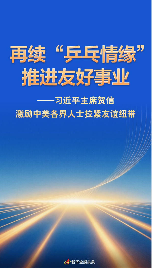 原标题:再续“乒乓情缘” 推进友好事业——习近平主席贺信激励中美各界人士拉紧友谊纽带