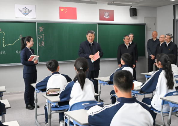 习近平总书记来到北京四中雄安校区,这是北京市援建雄安新区的“交钥匙”项目之一。