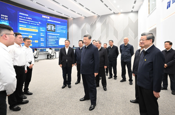 此次考察期间,习近平总书记走进企业运营监控与应急指挥中心,听取企业搬迁、产业布局、创新发展等情况介绍。