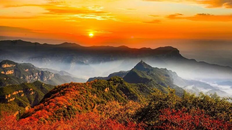 山峦起伏,红叶烂漫
