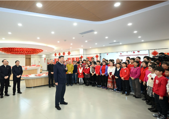 随后,习近平总书记来到经过集中改造的大东区长安街道长安小区。社区党群服务中心里,一些社区居民在写春联,孩子们编着中国结。总书记来到他们中间。