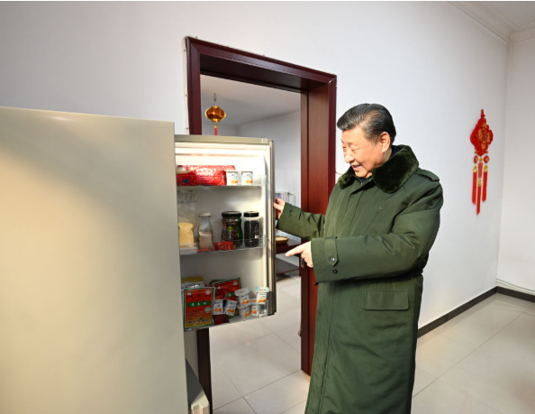 这是2024年2月1日上午,习近平总书记在天津西青区辛口镇第六埠村村民杜洪刚家中考察。新华社记者 谢环驰 摄