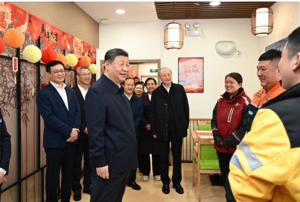2月10日,中华民族传统节日春节即将到来之际,习近平总书记来到北京市西城区新街口街道父母食堂考察。见到在这里休息的3名快递小哥,总书记为他们付出的辛劳和作出的贡献点赞。