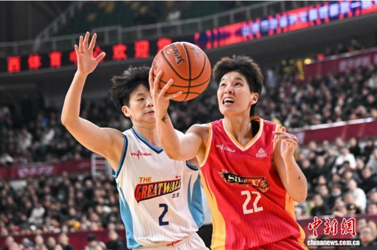 1月23日,山西队球员刘贝(红衣)在比赛中带球突破。当日,在太原举行的2025-2026赛季中国女子篮球联赛(WCBA)常规赛第19轮比赛中,山西竹叶青酒队主场以82比68战胜北京首钢园队。中新社记者 韦亮 摄