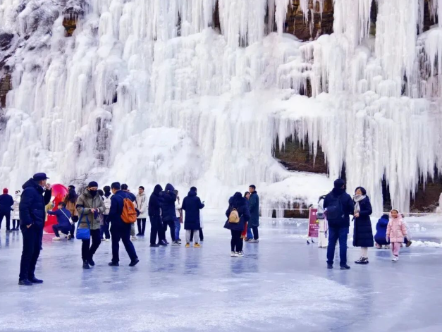 走进长治平顺的通天峡景区,碧绿的冰面布满天然裂纹,巨大的白色冰瀑直挂山崖,木质栈道在冰柱间延伸,游客可在冰面上行走嬉戏,或沿栈道登高观景。