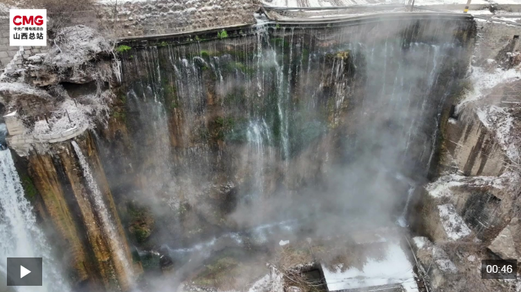 冰挂如玉 泉水奔腾 山西娘子关瀑布现“冰水共舞”景观