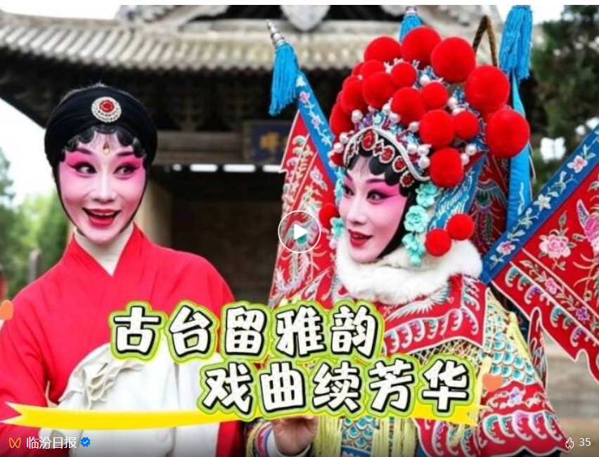 中国戏剧梅花奖获得者、临汾市小梅花蒲剧艺术培训中心一级演员梁静,和同为该中心一级演员、临汾戏曲界的网络达人程雅琨,以古戏台为幕,以蒲剧为媒,完成了一场跨越时空的对话,让古戏台重新响起高亢悠长的蒲韵。
