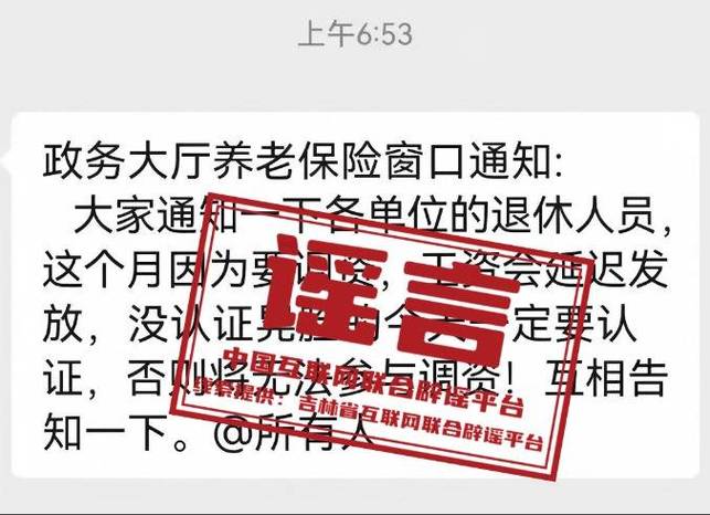 辟谣:官方回应“不认证无法参与调资,退休工资将延迟发放”等不实信息