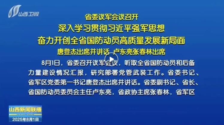 会议指出,去年以来,军地各级坚持以习近平强军思想为指引,全面落实党中央、中央军委决策部署,扎实做好政治引领、民兵建设、精准征兵等工作,全省国防动员和后备力量建设呈现稳步发展、持续深化的良好态势。驻晋部队官兵在急难险重任务中冲锋在前,有力支援地方建设,为全省改革发展稳定作出了重要贡献。新时代新征程,要深入学习贯彻习近平强军思想和习近平总书记考察山西重要讲话重要指示精神,深入贯彻新时代军事战略方针,全面深入贯彻军委主席负责制,传承弘扬伟大抗战精神和太行精神、吕梁精神,坚持政治建军、改革强军、科技强军、人才强军、依法治军,抓好练兵备战、部队建设、军地协作等任务,扎实推进国防动员高质量发展,在实现党在新时代的强军目标中彰显山西担当,为奋力谱写三晋大地推进中国式现代化新篇章作出新的更大贡献。