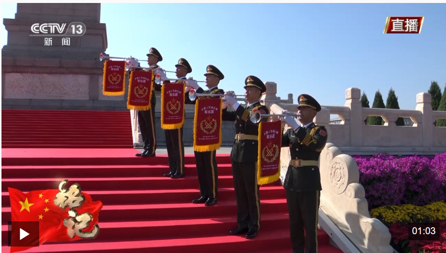 仪式现场,中国人民解放军军乐团小号手吹响《烈士纪念日号角》。