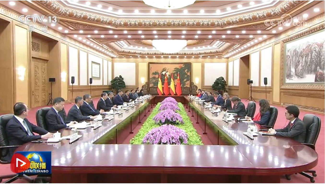 4月14日上午,国家主席习近平在北京人民大会堂会见来华进行正式访问的西班牙首相桑切斯。