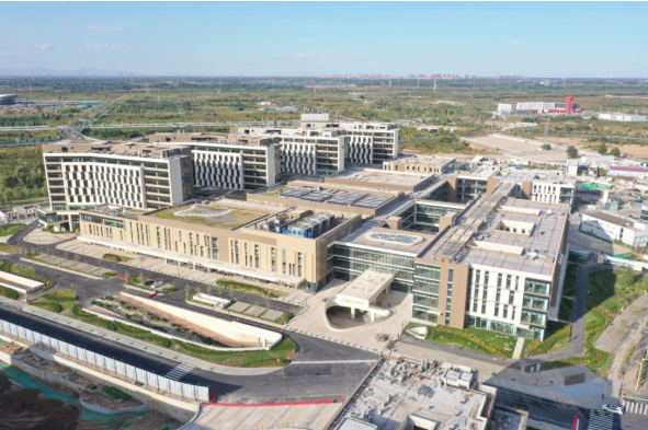 2023年6月30日,中共中央政治局召开会议,审议《关于支持高标准高质量建设雄安新区若干政策措施的意见》。此后,一揽子特殊支持政策陆续落地雄安新区。2023年10月16日,雄安宣武医院开诊。首都医科大学宣武医院派来管理团队及骨干医生,重点服务疏解人员和新区群众,并辐射京津冀地区。这是2023年9月30日拍摄的雄安宣武医院(无人机照片)。
