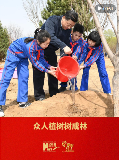 党的十八大以来,习近平总书记每年都会身体力行,参加首都义务植树活动。他强调,让我们从自己、从现在做起,把接力棒一棒一棒传下去。