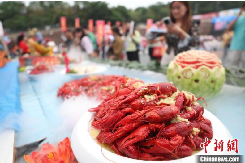 资料图:盱眙小龙虾吸引民众目光。中新社记者 泱波 摄