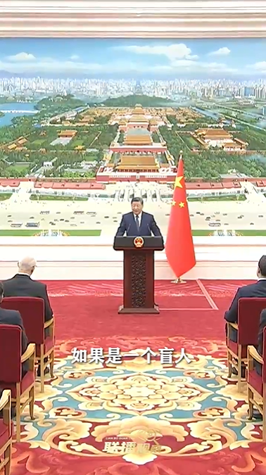 仪式结束后,习主席在对使节们发表讲话时,讲到一则“盲人摸象”的寓言故事。习主席说:“象很大,如果是一个盲人,他摸到一条腿,就说象是一个柱子,摸到肚子,就说象是一堵墙,但实际上不是完整的象。”