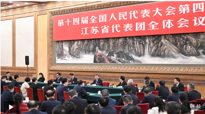 这是总书记2023年初在江苏全票当选十四届全国人大代表后,连续第四年参加本团审议。