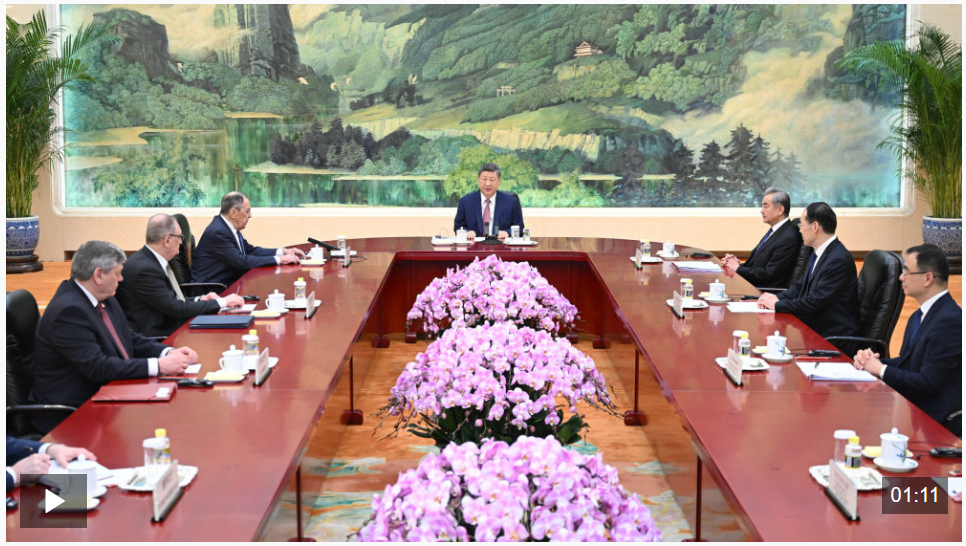 4月15日上午,国家主席习近平在北京人民大会堂会见俄罗斯外长拉夫罗夫。