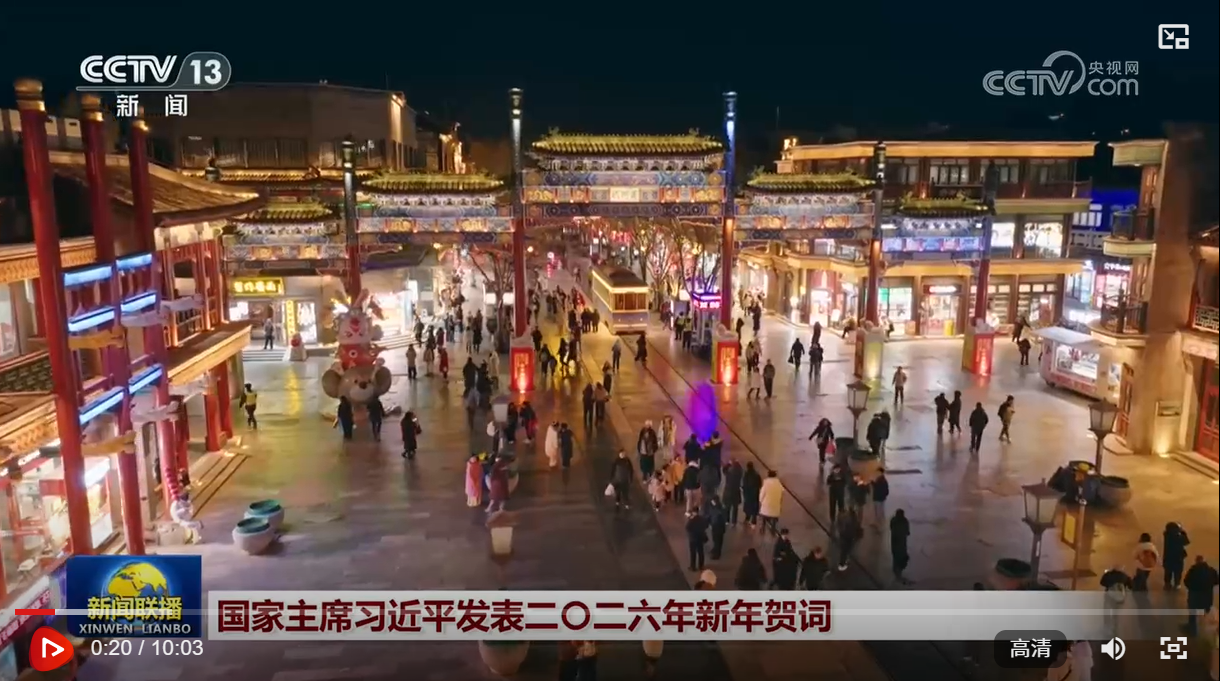 “柴米油盐、三餐四季,每个‘小家’热气腾腾,中国这个‘大家’就蒸蒸日上。”新年前夕,国家主席习近平通过中央广播电视总台和互联网,发表了二〇二六年新年贺词。习近平主席用温暖有力的话语,娓娓讲述这一年中华大地的盛典荣光、科创亮点、文化“顶流”、民生成绩、外交硕果、全运盛况,深情回望“十四五”时期我们走过的极不寻常的历程,诚挚致敬每一位辛勤付出的奋斗者。