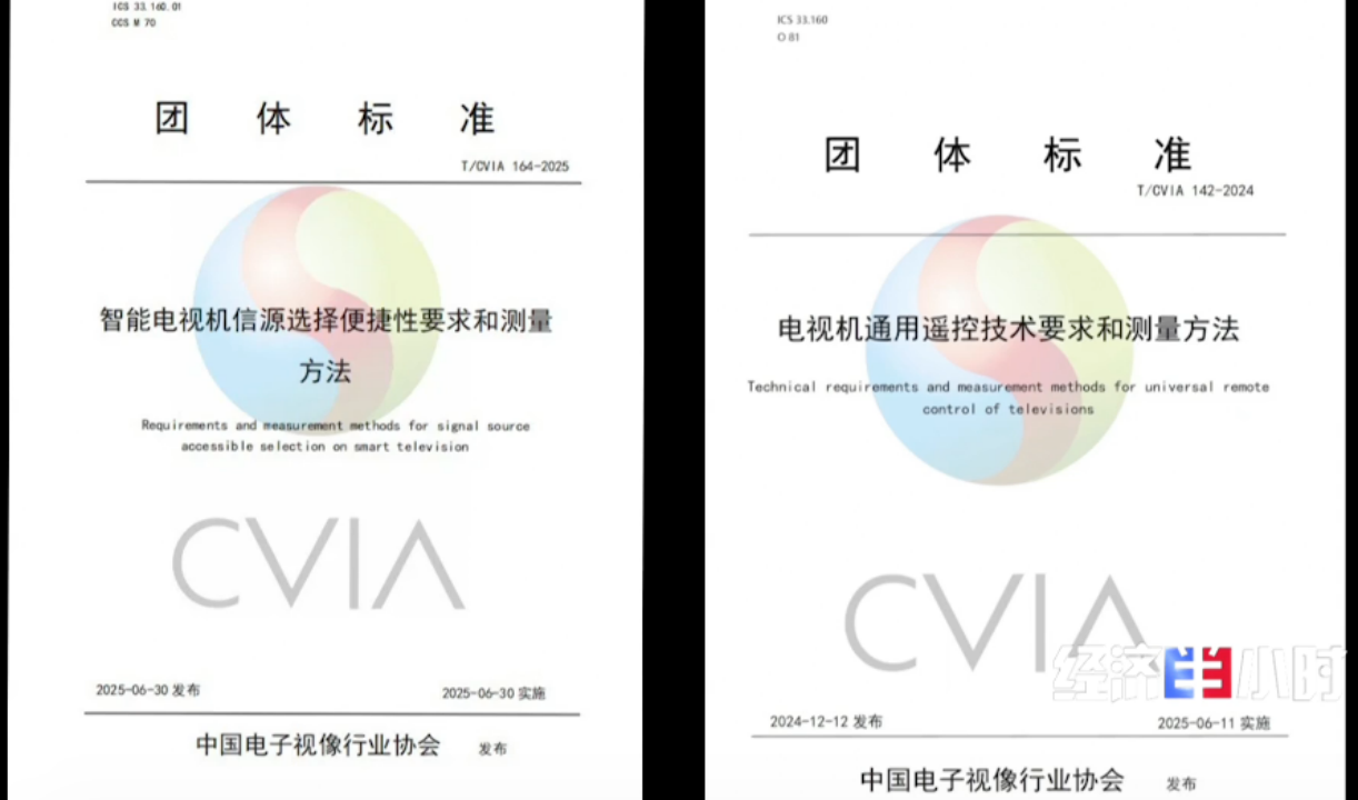 2025 年 6 月,中国电子视像行业协会正式出台《智能电视机信源选择便捷性要求和测量方法》与《电视机通用遥控技术要求和测量方法》两部标准,为电视机厂商提供统一生产规范指引。
