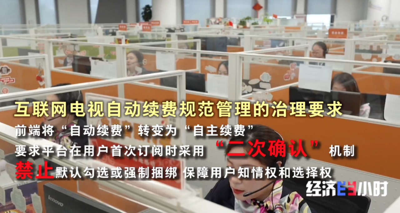 针对用户投诉反映的问题,平台迅速落实。广电总局就互联网电视自动续费规范管理的治理要求:前端将“自动续费”转变为“自主续费”,要求平台在用户首次订阅时采用“二次确认”机制,禁止默认勾选或强制捆绑,保障用户知情权和选择权。