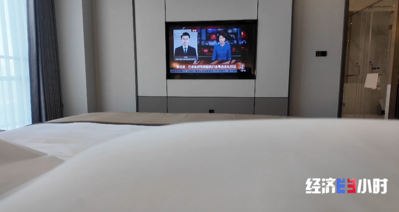 潍坊一家五星级酒店客房内,传统电视柜下那些缠绕的线缆和突兀的机顶盒已经消失了踪影。取而代之的,是整洁的墙面和这台高度集成的一体化电视。