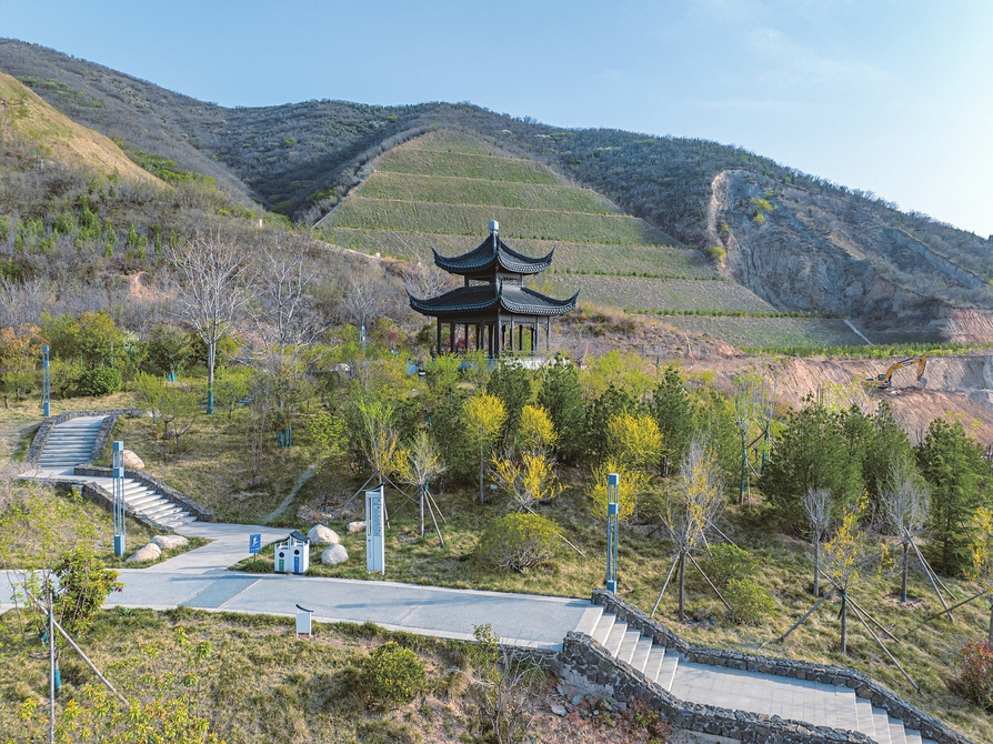 如今,站在南山新境市民广场,深坑和断崖已难觅踪迹,映入眼帘的是满目青翠的山峦,很难让人将其与曾经的“视觉疮疤”联系起来。沿着山路深入,来到中条山文化博览园,一处正在修复的山体吸引了众人的目光。当地一位群众说:“过去,这片矿山周围碎石堆积如山,杂草丛生,残破的变电房、地磅散落一地,荒凉无比。”