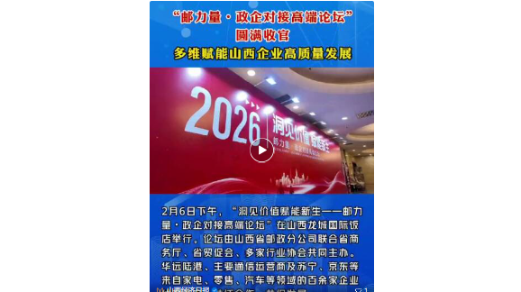 2026年2月6日下午,“洞见价值赋能新生——邮力量・政企对接高端论坛”在山西龙城国际饭店成功举办。本次论坛由山西省邮政分公司牵头,联合山西省商务厅、中国国际贸易促进委员会山西省委员会、山西省家电行业服务协会、山西省跨境电子商务协会、成事青年协会共同打造,华远陆港、四大通信运营商及苏宁、京东等知名企业,涵盖家电、零售、汽车等多个领域100余家企业代表齐聚一堂,共话合作、共促发展。